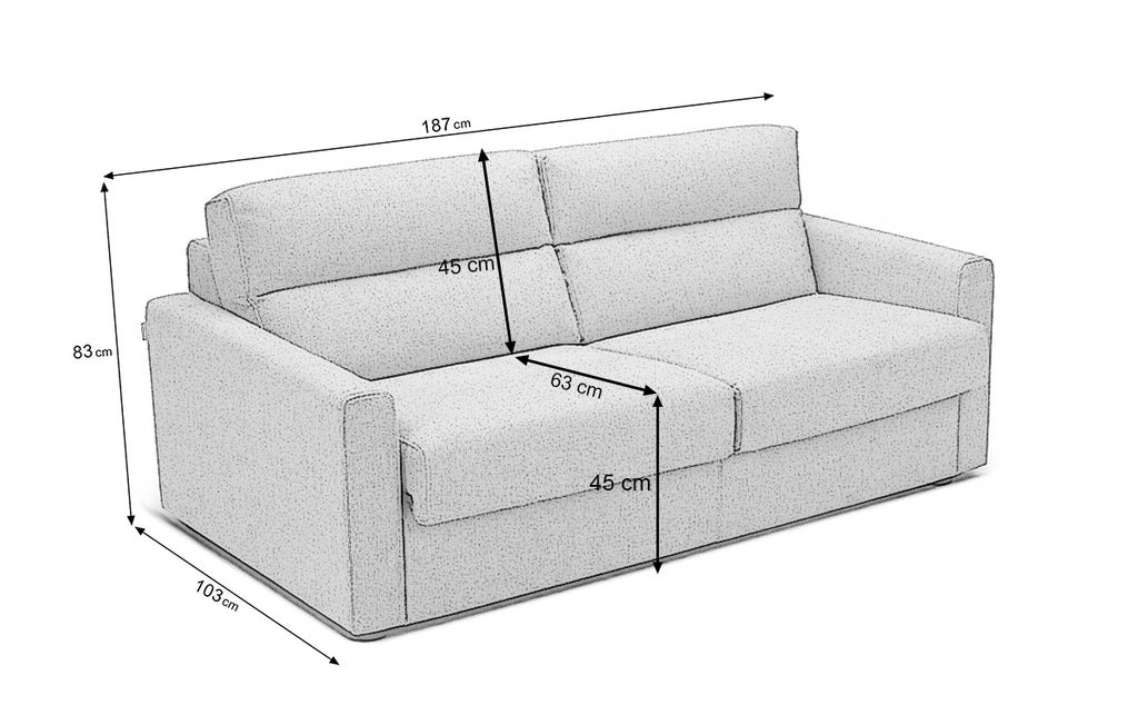 Soho – Canapeaua extensibilă compactă cu mecanism ușor și saltea de 12 cm din spumă inclusă