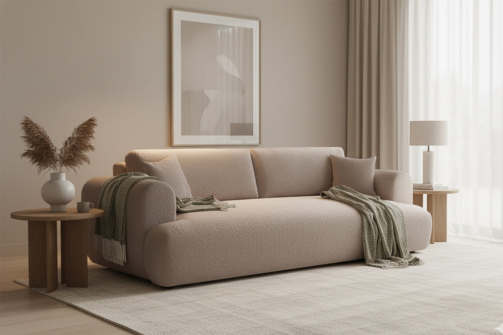 ✔️ Stofă bouclé premium – texturată și cozy