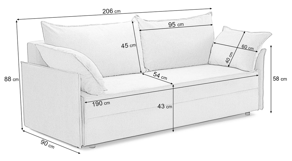 | Adâncimea șezutului: 54 cm (cu perne), 74 cm (fara perne) | |