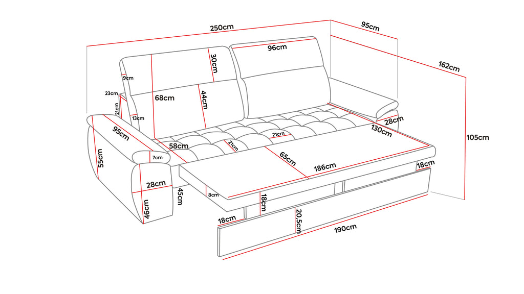 Canapea Extensibilă 3 locuri TRENDY, cu tetiere reglabile, 250x95x105 cm