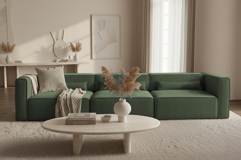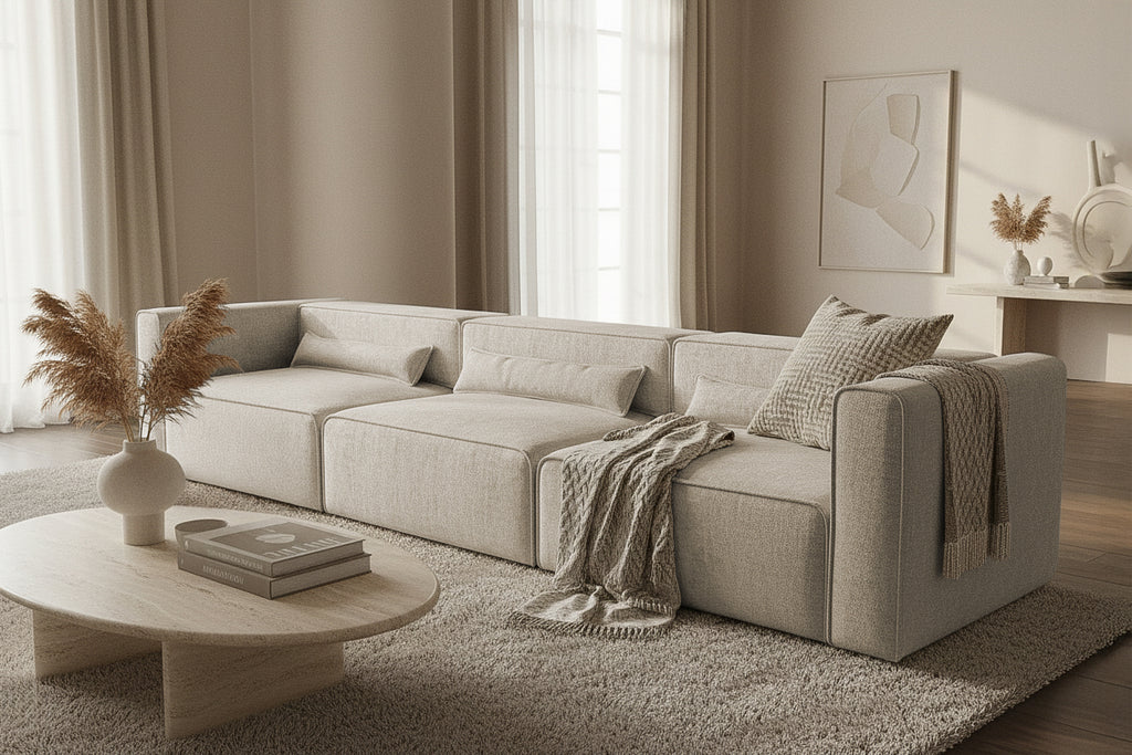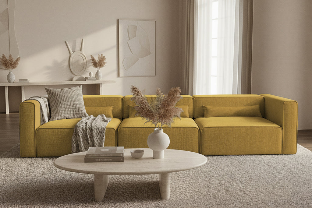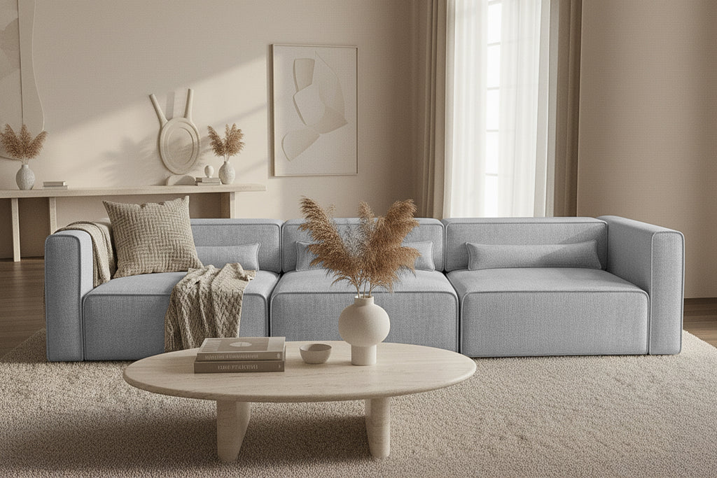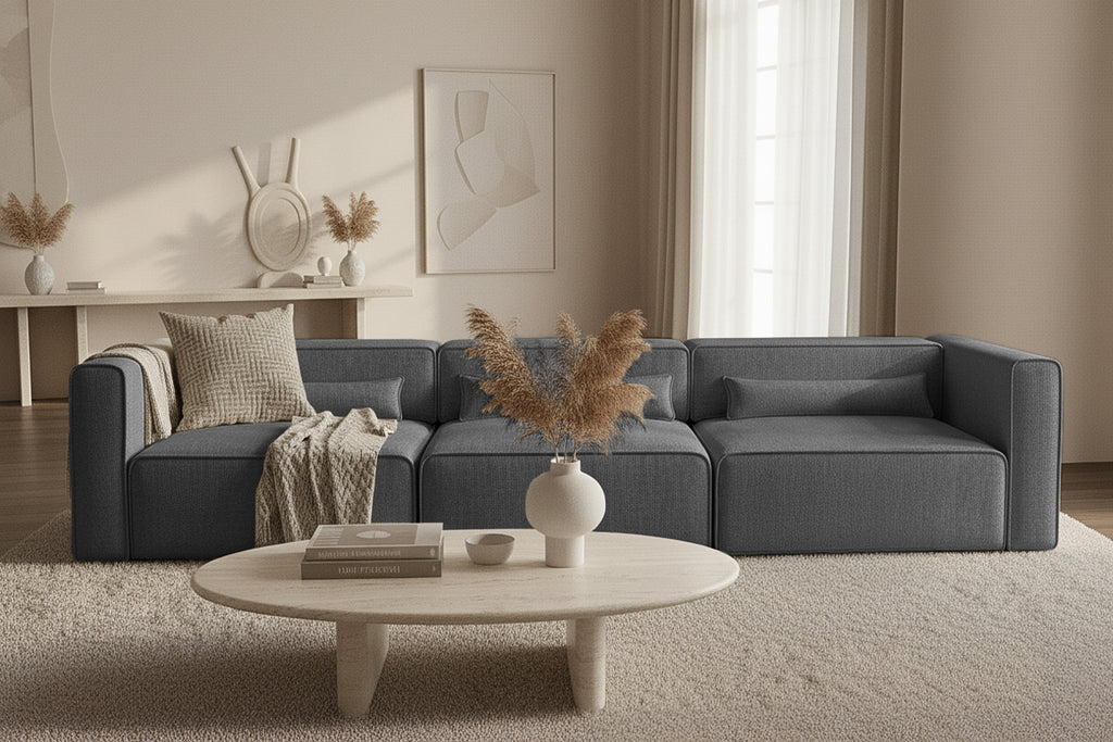 Creează-ți propriul colț de confort absolut cu canapeaua Zanetto în 3 module – o piesă statement pentru spații ample și amenajări aerisite.