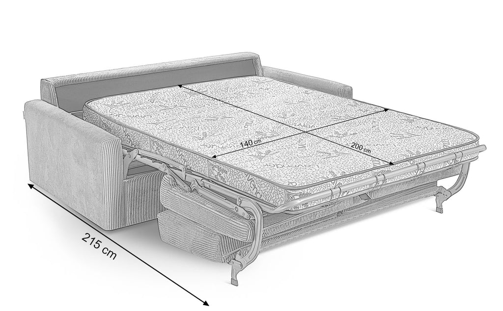 Canapeaua include un mecanism de extindere metalic robust, care permite transformarea rapidă și ușoară într-un pat. Salteaua pliabilă din spumă poliuretanică, de dimensiuni 140x200 cm, este ortopedică și reversibilă, asigurând un somn odihnitor. Principalul avantaj al acestei canapele este confortul său remarcabil, comparabil cu cel al unui pat tradițional. Structura rezistentă, realizată din PAL și lemn masiv, garantează durabilitatea și stabilitatea pe termen lung.