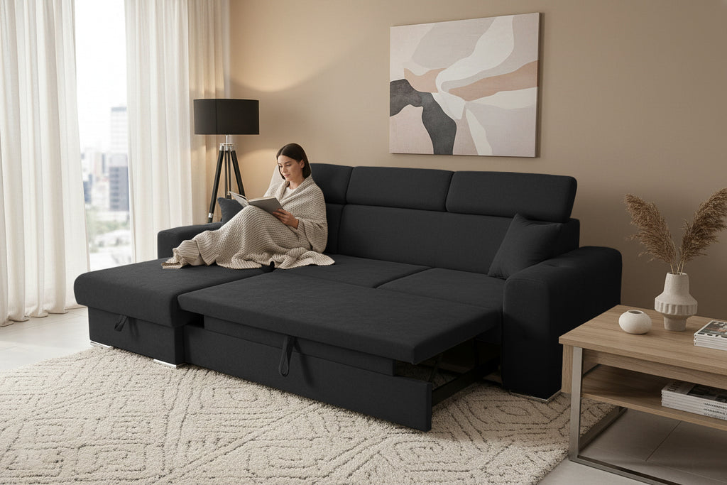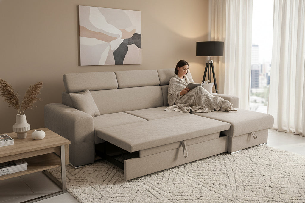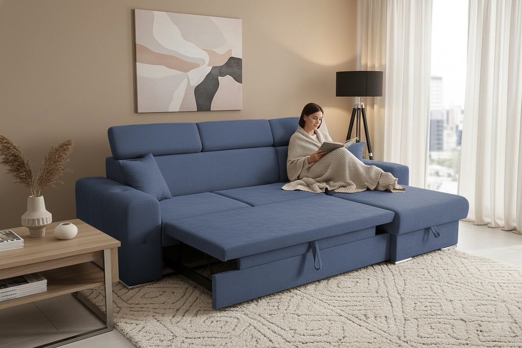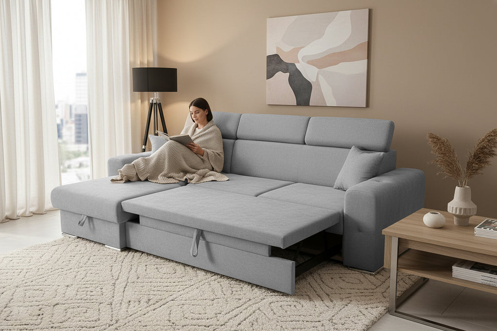 ✔️ Extensie tip sertar – se transformă ușor într-un pat spațios, ideal pentru oaspeți sau seri de film în familie.