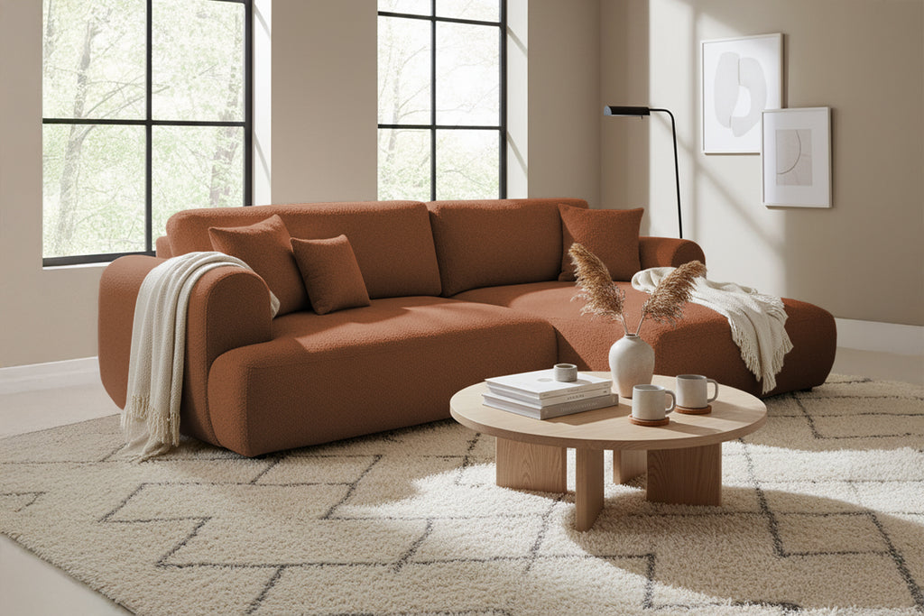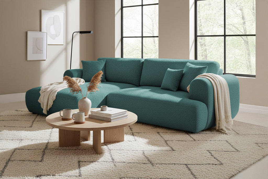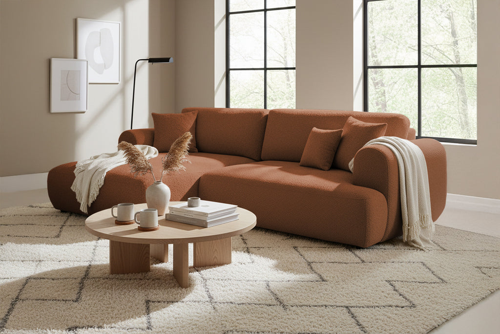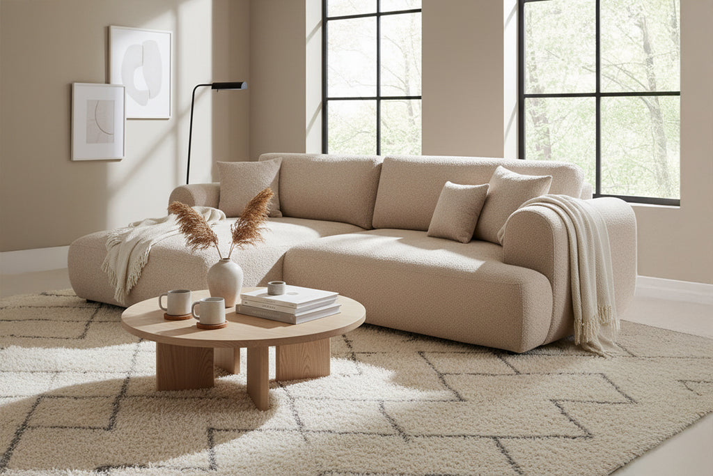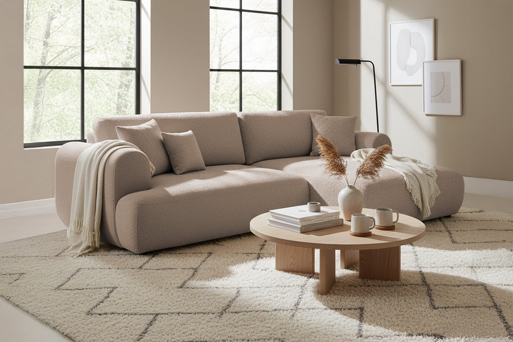 • Noa redefinește ideea de colțar modern. Cu linii rotunjite, volum fluid și stofă bouclé Anthology, această piesă aduce o notă de rafinament relaxat în orice living.