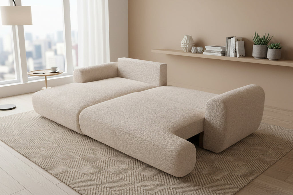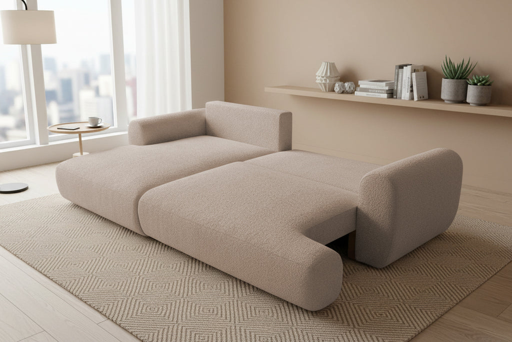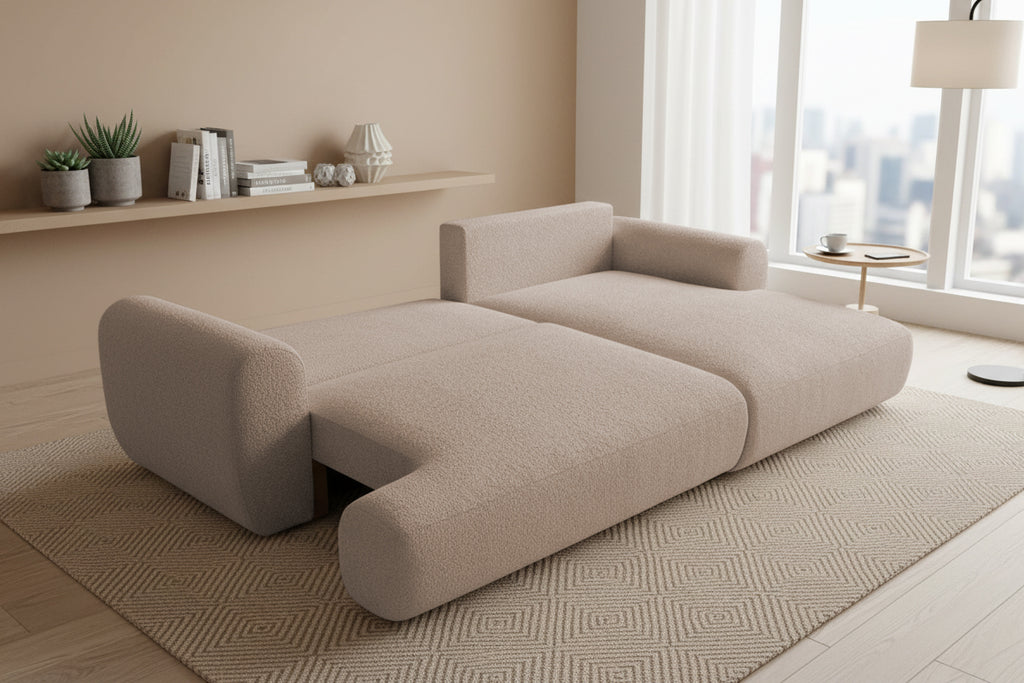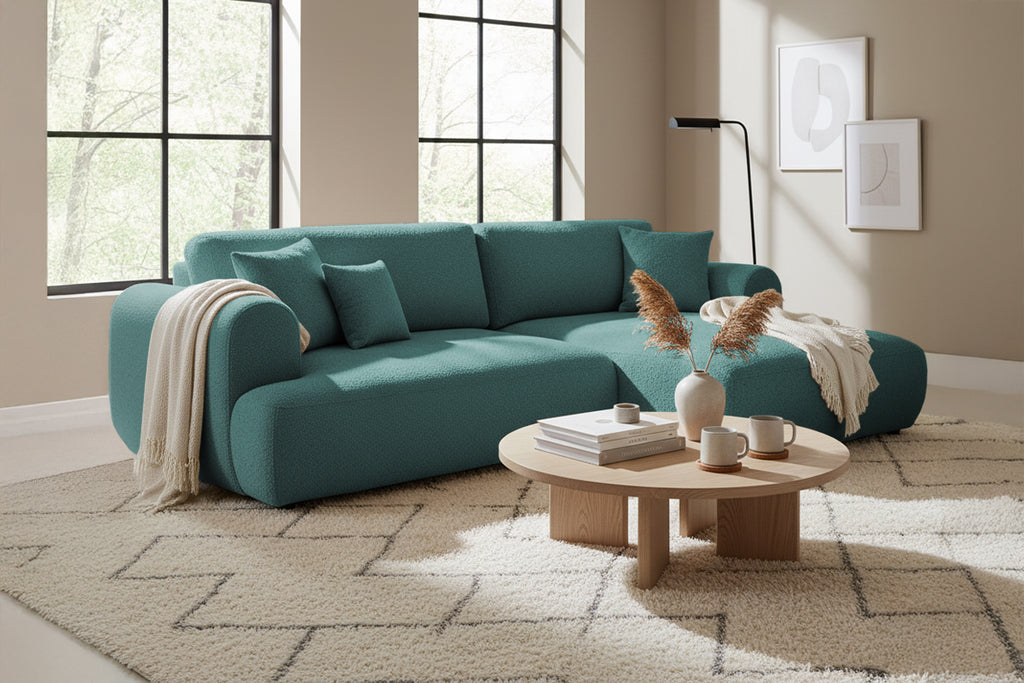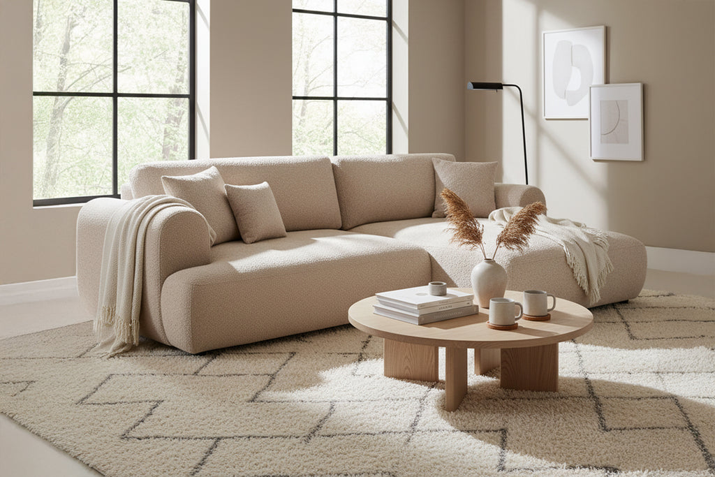 • Noa redefinește ideea de colțar modern. Cu linii rotunjite, volum fluid și stofă bouclé Anthology, această piesă aduce o notă de rafinament relaxat în orice living.