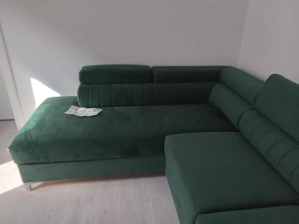Construit pe un cadru robust din lemn masiv și PAL, colțarul este acoperit cu stofă Velluto tip velur, moale și elegantă, rezistentă la zgârieturile animalelor de companie. Stofa Velluto, certificată Oeko-Tex Standard 100, garantează că produsul nu conține substanțe nocive, fiind sigur pentru utilizare.