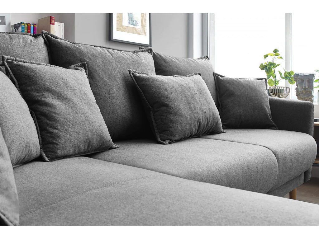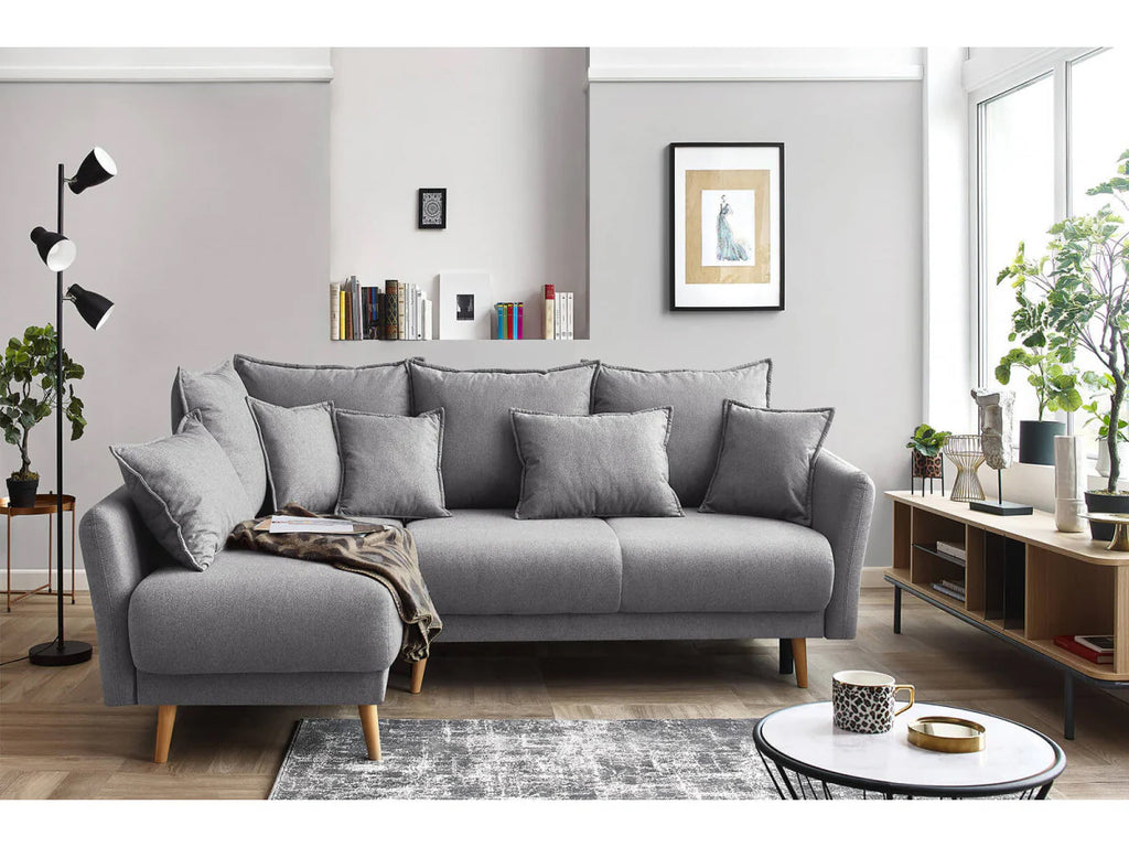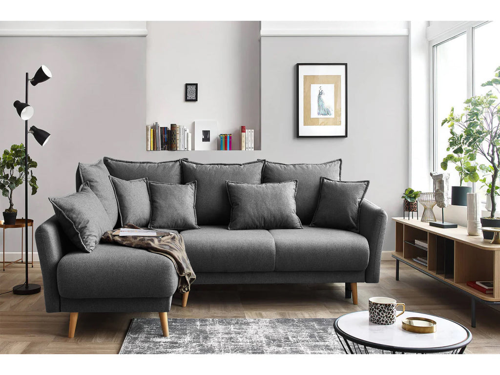 Colțarul extensibil și cu ladă de depozitare Juliet este modern, cu un design contemporan în stil scandinav. Se potrivește cu succes și în spațiile mici, este ideal când aveți oaspeți, fiind extensibil cu o suprafață de dormit generoasă. În plus, puteți depozita așternuturile în lada de depozitare. Colțarul este recomandat dacă doriți un plus de confort și puteți alege o culoare mai îndrăzneață sau o culoare neutră, potrivită pentru designul interior al casei dvs.