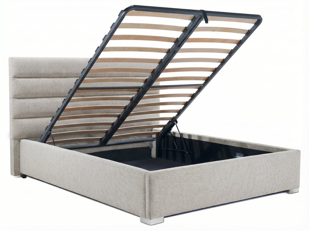 Pat Tapițat DIESIS , cu somieră rabatabilă și ladă de depozitare, 160x200 cm, Crem - Outlet