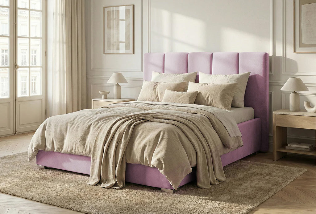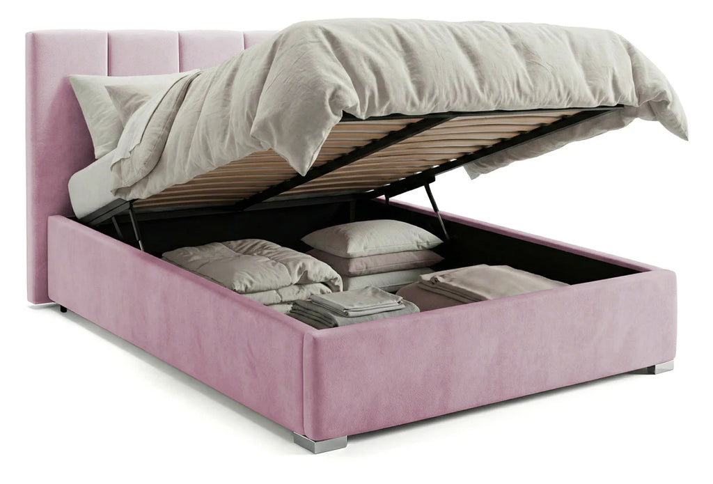 Pat Tapițat Luna, cu somieră rabatabilă și ladă de depozitare, 140x200 cm, Lavanda - Outlet