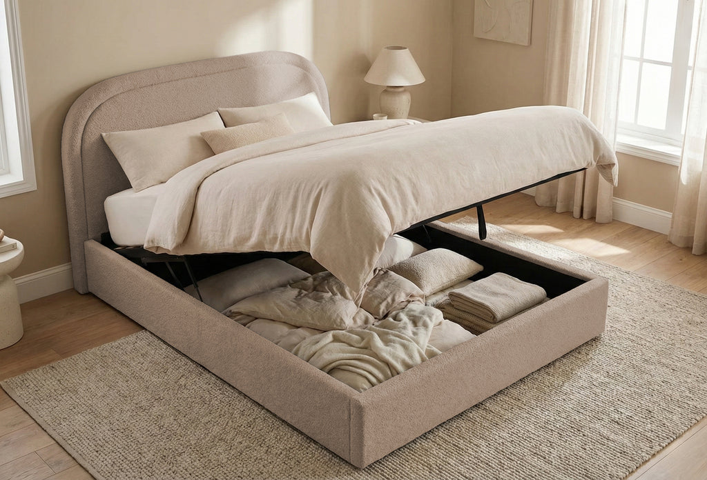 Pat Tapițat Cloud, cu somieră rabatabilă și ladă de depozitare