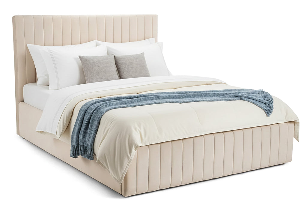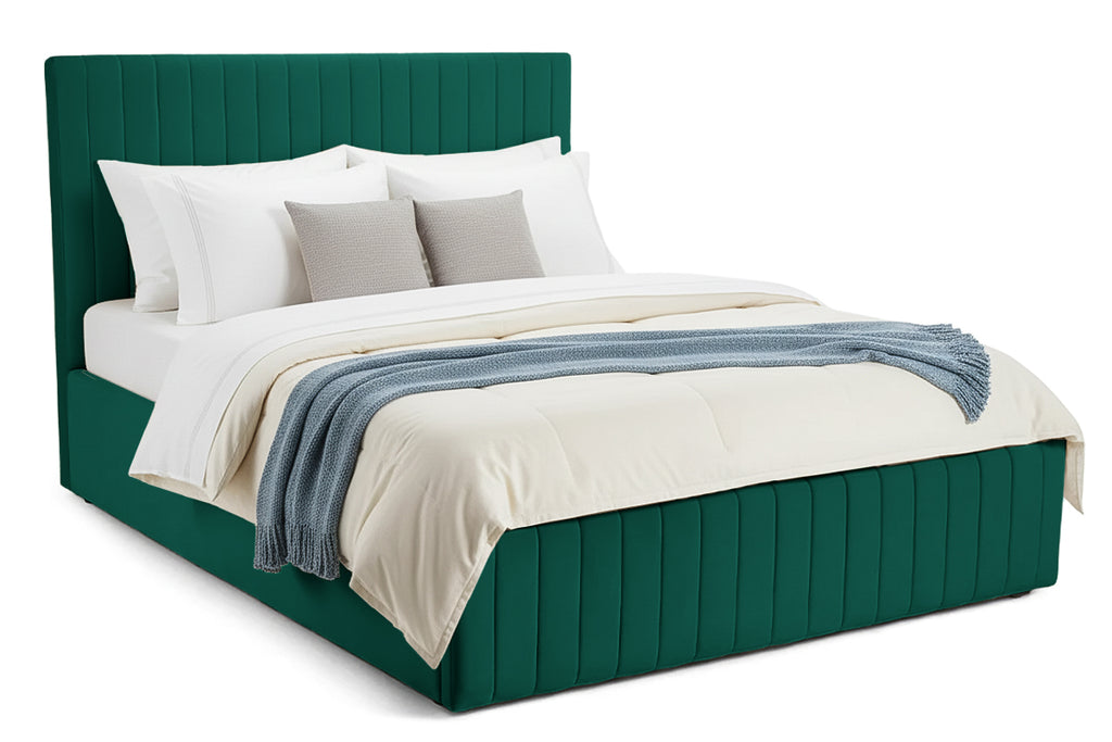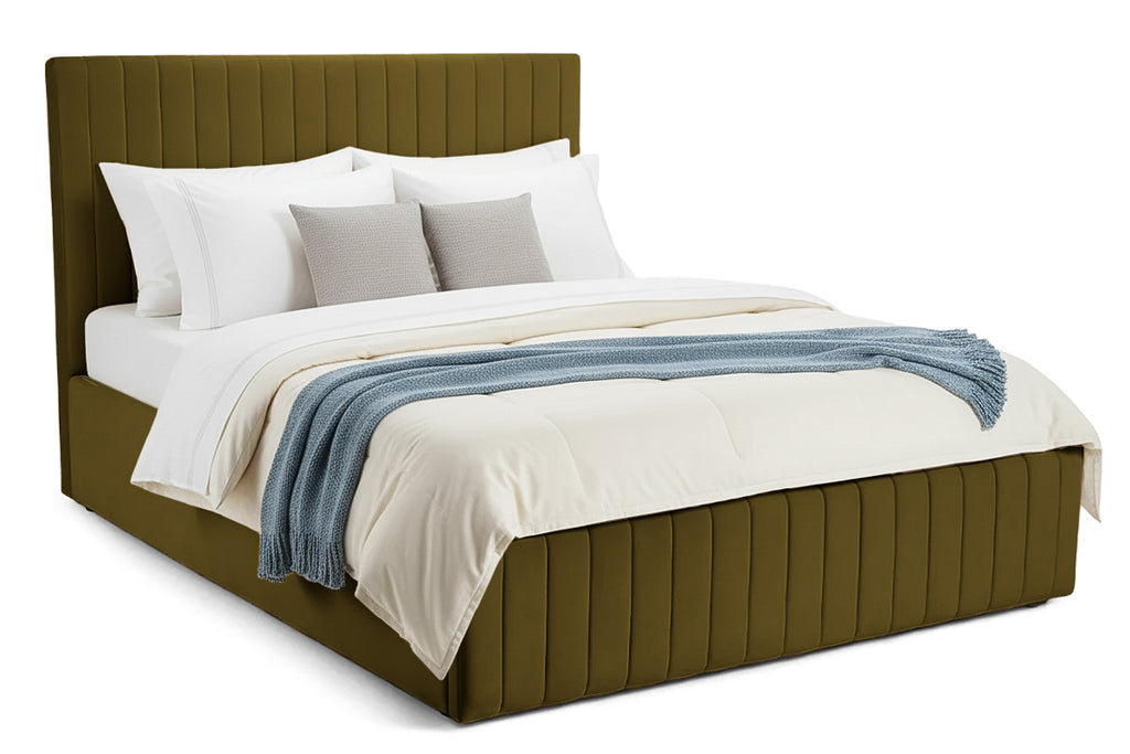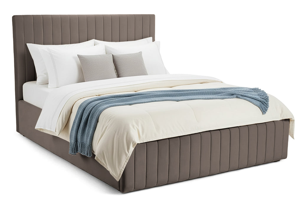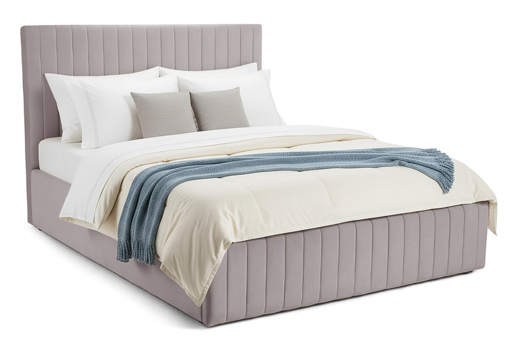 Patul este dotat cu o tăblie de dimensiuni generoase, tapițată cu stofă Velluto moale, tip velur. Aceasta nu doar că oferă un luciu elegant și rafinat, dar asigură și o senzație plăcută la atingere. Designul său sofisticat va adăuga cu siguranță un plus de stil dormitorului.