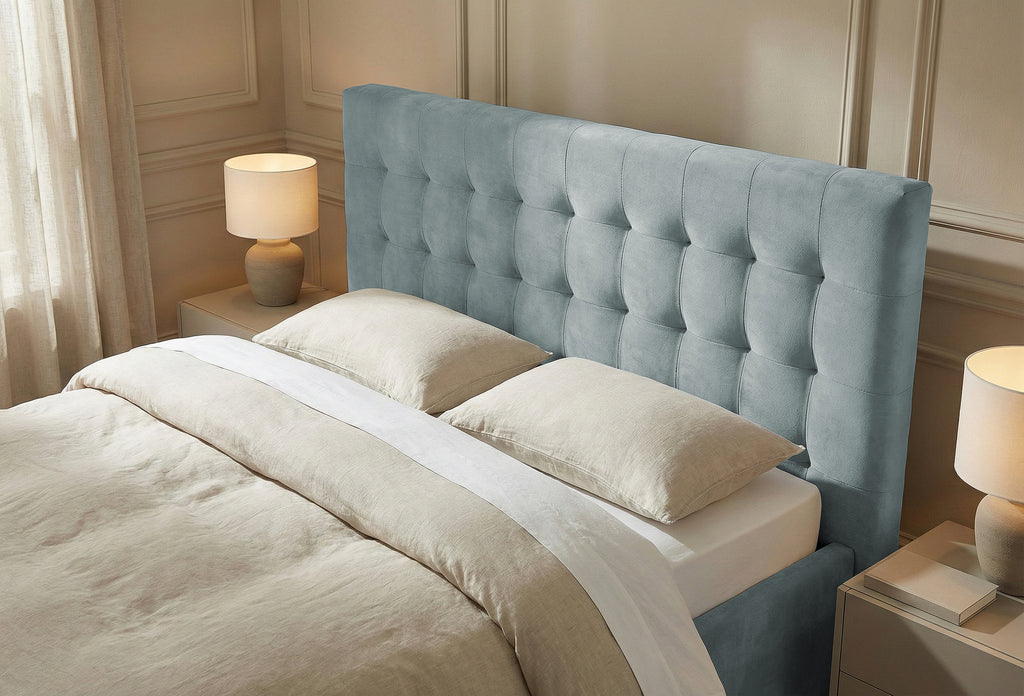 ✔️ Tăblie tapițată cu design vertical – suport comod și estetică modernă