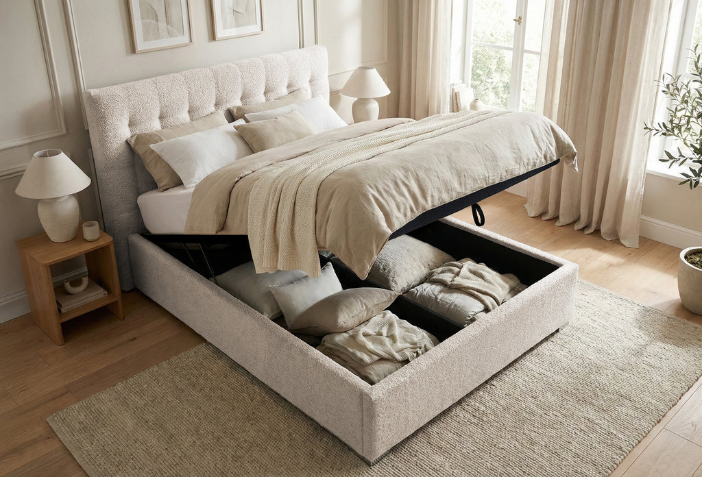 ✔️ Ladă încăpătoare – perfectă pentru lenjerii, perne sau alte obiecte de care vrei să scapi vizual