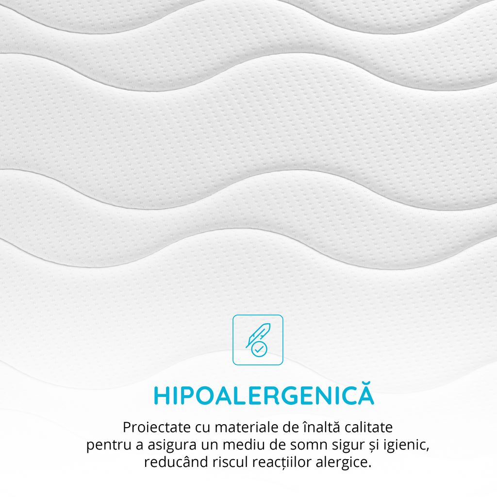 Asigură stabilitate, aerisire și echilibru între straturile saltelei, păstrând totodată un mediu igienic și sigur pentru somn. Este hipoalergenic și previne acumularea de praf sau alergeni.