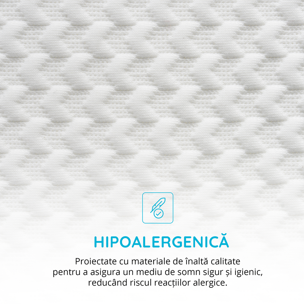 Realizată din tricot termoregulator și material antiperspirant, husa asigură o ventilație optimă și o senzație plăcută la atingere. Poate fi îndepărtată și spălată cu ușurință, menținând salteaua curată și igienică pentru un somn sănătos.