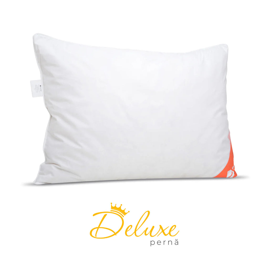 Cu o umplutură realizată din pene și puf de gasca, Perna Deluxe este incredibil de moale și pufoasă, oferind o experiență de somn ca la un hotel de 5 stele.